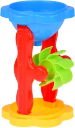 Nasypte písek nebo nalijte vodu do trychtýře a sledujte, jak se kolo roztáčí. Skvělá podívaná, která podporuje zvídavost.