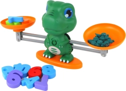 Dinosauří váha s dvojicí misek pomáhá dětem pochopit, jak čísla a množství vyvažovat. Ideální pro první setkání s pojmy více/méně a rovná se.