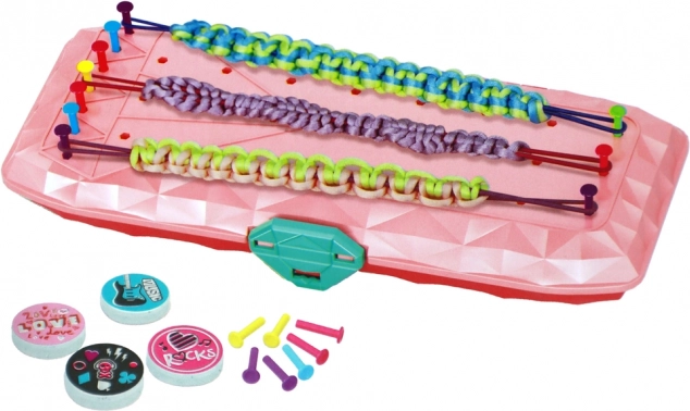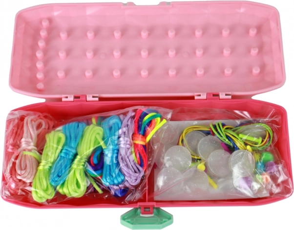Tato kreativní sada pro malé tvůrce promění každou chvíli v zábavnou dílnu šperků. Elegantní růžové pouzdro slouží jako úhledná organizace materiálů i jako praktická pracovní základna – plastové kolíky a gumičky umožní snadné proplétání a vytváření stylových náramků podle nálady.