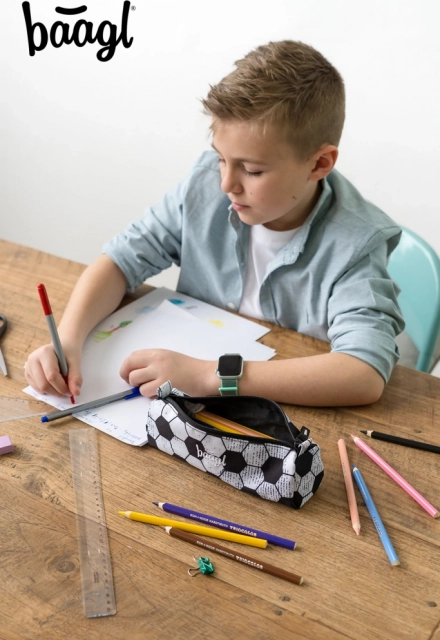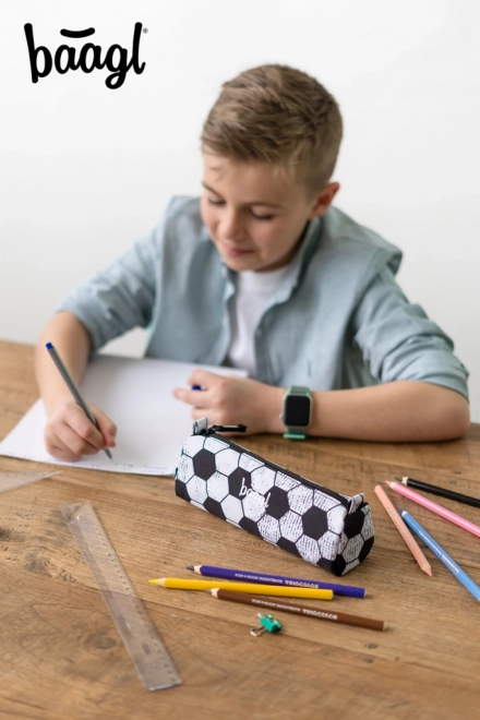 Pouzdro Baagl na psací potřeby s motivem fotbalového míče, ideální pro studenty, kteří hledají stylové a praktické řešení pro ukládání tužek a per.