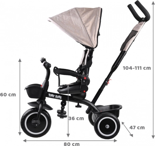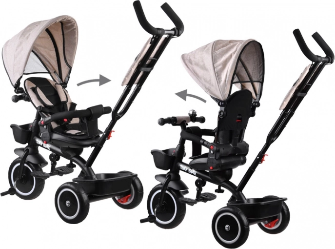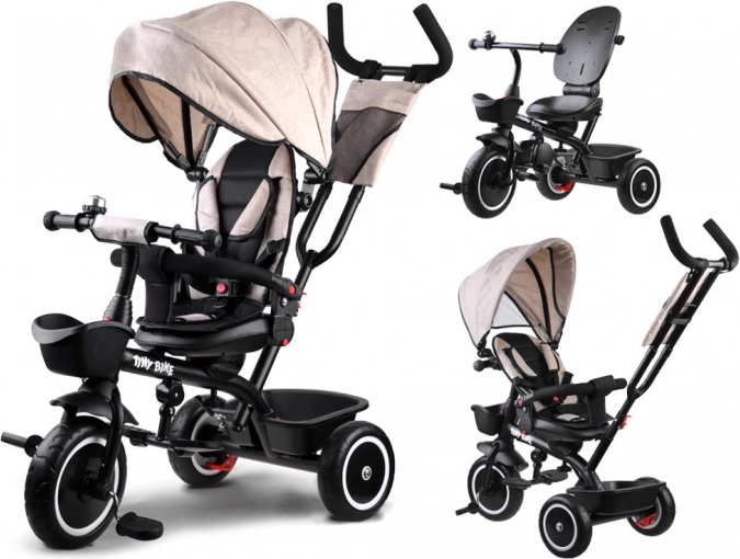 Dětská tříkolka 3v1 s otočným sedadlem a stříškou TINY BIKE – Béžová