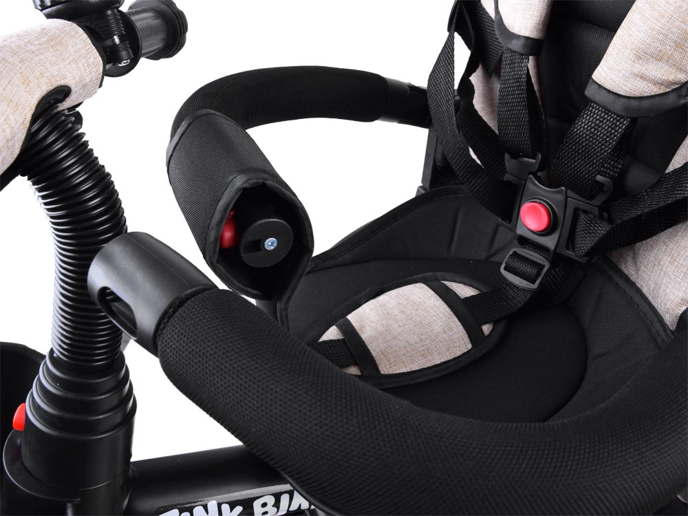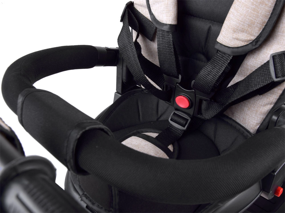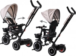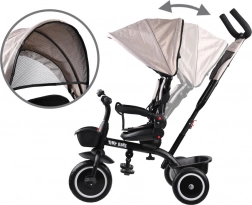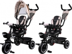 Tato multifunkční tříkolka 3v1 kombinuje vozík pro rodičovské vedení, pohodlný kočárkový režim a samostatnou tříkolku pro první jízdy. Otočné sedadlo umožní sledovat rodiče nebo směr jízdy, stříška s větrací síťkou chrání před sluncem, větrem i lehkým deštěm a zajišťuje příjemné klima. 5bodové pásy, měkká odnímatelná bariérka a polstrovaný potah se snadnou údržbou se postarají o komfort i bezpečí.