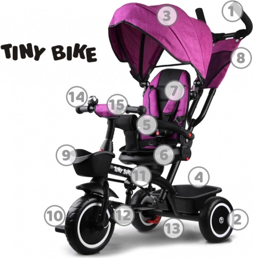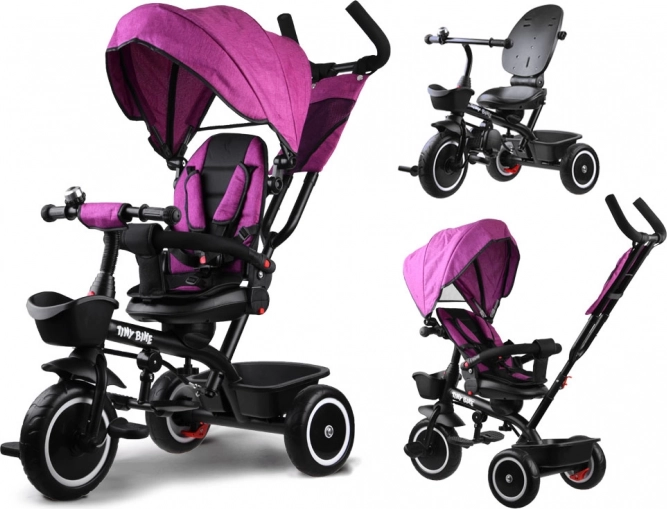 Dětská tříkolka 3v1 s otočným sedadlem a stříškou TINY BIKE – Růžová