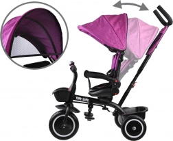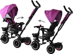 Tato multifunkční tříkolka kombinuje výhody kočárku, odrážedla a klasické tříkolky. Díky otočnému sedátku můžete dítě vozit čelem k rodiči i ve směru jízdy. Měkké polstrování, pětibodové pásy a odnímatelná bezpečnostní bariérka zajišťují maximální komfort a bezpečí.