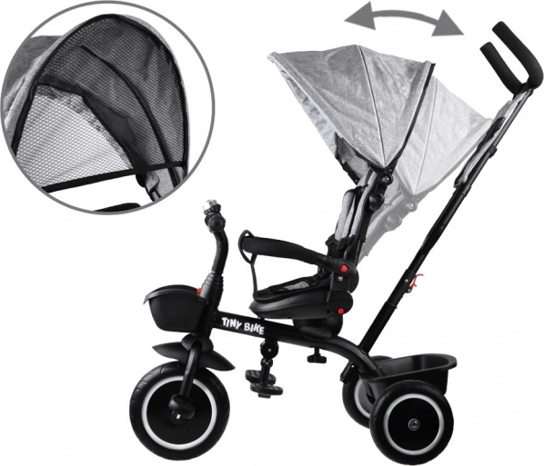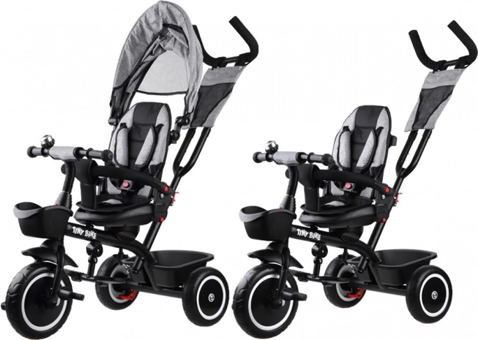 Dětská tříkolka 3v1 s otočným sedadlem a stříškou TINY BIKE – Šedá