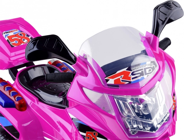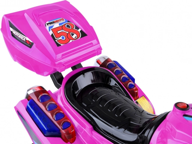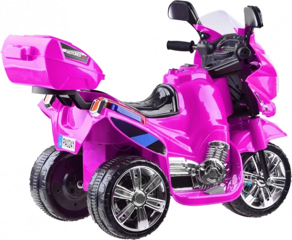 Motorka se startuje tlačítkem s realistickým zvukem motoru, nabízí veselé melodie a je vybavena elektrickou brzdou, která se aktivuje automaticky po uvolnění plynového pedálu. Praktický zadní kufřík pojme drobné hračky a nezbytnosti na cestu. Nechybí boční zrcátka, čelní štít a odolná plastová konstrukce.