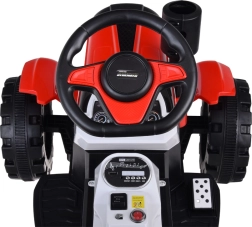 Tento robustní dětský traktor s přívěsem je skvělou volbou pro malé farmáře. Díky dvojici motorů 2x6 V a gelové baterii 6 V 7 Ah zvládne jízdu po různých površích a převeze drobný náklad jako větvičky či hračky. Realistický volant, velká kola a komfortní sedadlo podporují bezpečnou a zábavnou jízdu.