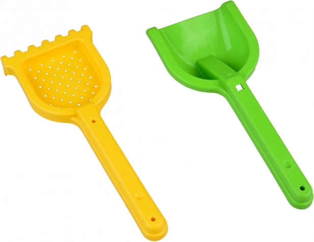 Obsahuje hrábě, lopatku a formy pro nekonečné stavění a tvoření v písku.