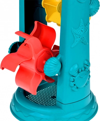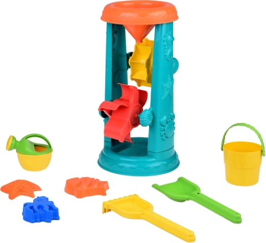 Dětská písečná sada je pečlivě navržena s motivy mořských živočichů, jako jsou rybičky a chobotnice. Největší atrakcí je 37 centimetrové vodní kolo, do kterého děti mohou vsypávat písek nebo nalévat vodu a sledovat, jak se *dvojitá kola* otáčejí. Toto podporuje rozvoj logického myšlení a pochopení příčinných souvislostí.
