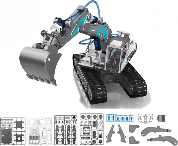 Postavte si vlastní hydraulické pásové rypadlo ze stavebnice DIY s 130 díly. Skvělá zábava a vzdělávání v jednom – děti se seznámí s hydraulikou, Pascalovým zákonem a rozvíjejí manuální dovednosti i kreativní myšlení. Ideální dárek pro malé techniky od 8 let, s certifikací CE a shodou s EN71.