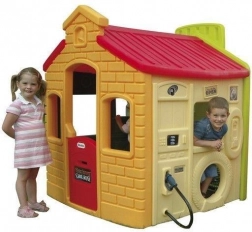 Domek od Little Tikes vybízí k rozmanitým hrám díky čtyřem stěnám, z nichž každá má svůj unikátní motiv. Sportovní stěna obsahuje koš, míček a terč na házení. Stěna s benzínkou je vybavena čerpadlem, telefonem a speciálně profilovanými detaily. Obchod/restaurace má okénko s okenicemi, pokladnu, polici uvnitř domku a profilované doplňky. Škola zahrnuje stolek, tabuli, abecedu a čísla. Domek má dvojité stěny, které chrání před sluncem a počasím, je odolný proti nárazům.