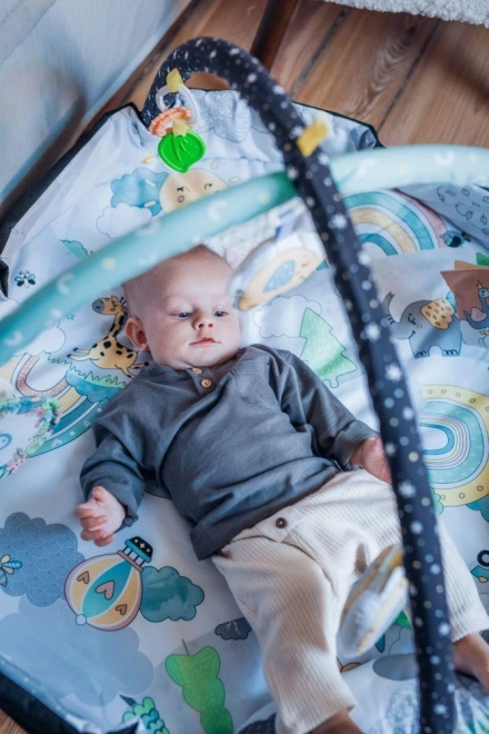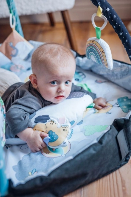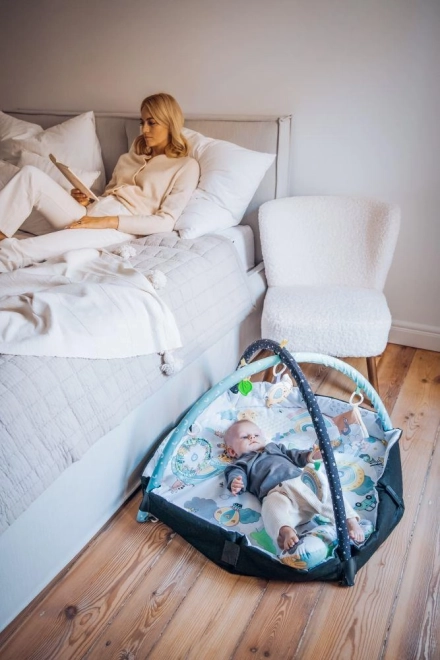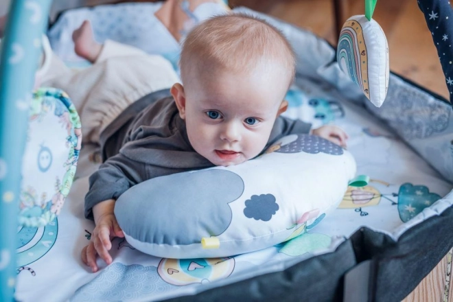 MoMi Day & Night roste s vaším miminkem – od prvního pozorování kontrastních vzorů, přes uchopování zavěšených hraček až po bezpečné dovádění v ohrádce nebo suchém bazénku. Díky bočním stranám, které lze zvednout, vytvoříte během chvilky útulný a chráněný prostor pro hru. Dvě křížové hrazdičky s rovnoměrně rozmístěnými hračkami udrží pozornost děťátka a podporují koordinaci oko–ruka.