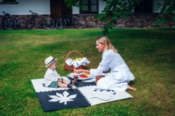 Voděodolný a protiskluzový povrch stačí otřít. Podložku rychle sestavíte na podlaze, koberci i na trávě.