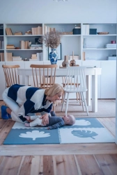 MoMi FELI je designová hrací podložka z kvalitní EVA pěny, která tlumí nárazy a chrání podlahu. Díky neutrálním černo‑bílým tónům skvěle zapadne do moderního interiéru a zároveň podporuje soustředění nejmenších. Interaktivní 3D listy rozvíjejí jemnou motoriku a fantazii dítěte.