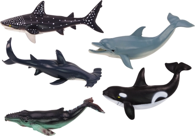 - 6 detailně zpracovaných figurek: kosatka, velryba, žralok, kladivoun, žralok obrovský (žralok velrybí) a delfín