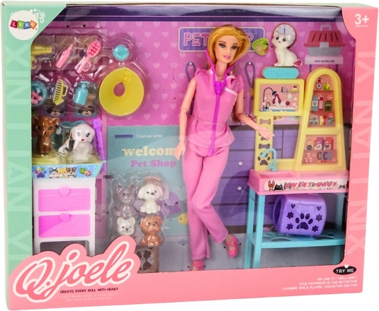 Objevte svět péče o mazlíčky s touto kreativní sadou pro malé veterináře. Panenka v lékařském plášti se stetoskopem a pohyblivými klouby umožňuje dětem přehrávat realistické scénky vyšetření a ošetření zvířátek. Součástí jsou také ošetřovací a pečující nábytek a doplňky, které umocňují zážitek ze hry.