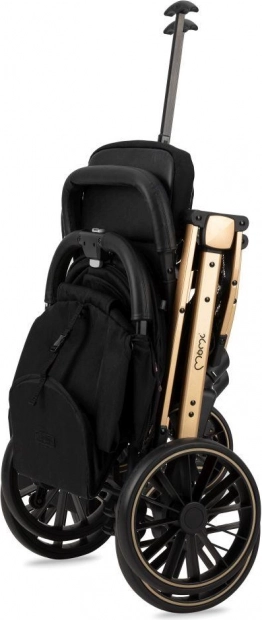 Po složení má kočárek malé rozměry a díky rozšiřitelné rukojeti jej můžete pohodlně vést jako cestovní kufr – ideální na cesty i do malého kufru auta.