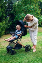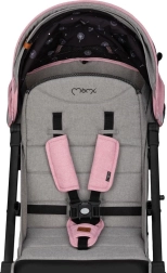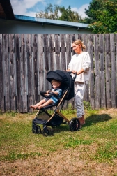 Pro pohodlí dítěte nechybí plynule nastavitelná opěrka zad až do polohy vleže, nastavitelná opěrka nohou s povrchem z ekokůže pro snadné čištění a rozšiřitelná stříška se dvěma okénky, UV ochranou a reflexními prvky. Kočárek je vybaven pětibodovými bezpečnostními pásy a odnímatelným madlem. Praktický spodní koš pojme až 2 kg vašich nezbytností.