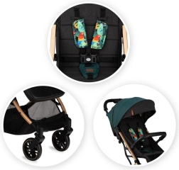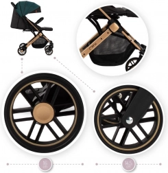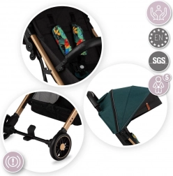 Pro dítě poskytuje kočárek maximální pohodlí: polohovatelná zádová opěrka, nastavitelná opěrka nohou s omyvatelnou ekokůží a pětibodové pásy drží malého pasažéra bezpečně na místě. Pro rodiče je tu rychlé skládání, funkce samostatného stání po složení, teleskopické madlo pro tažení/tlačení jako kufru a prostorný koš na nákupy.