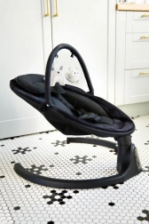 MoMi Kenani Onyx je moderní elektrické houpátko pro pohodlné uklidnění a zabavení miminka od narození. Stabilní hliníkovo-ocelová konstrukce, měkký plyšový potah a polštářek pod hlavu zajišťují komfort, zatímco 5bodové pásy a protiskluzové podložky dbají na bezpečí. Díky Bluetooth snadno pustíte oblíbené písničky z telefonu, přehledný LCD displej a dálkové ovládání zase ulehčí každodenní používání.