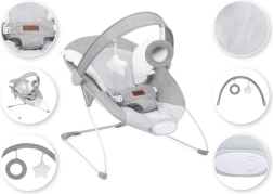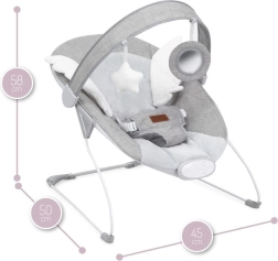 Lehátko obsahuje senzorickou jednotku s až 8 melodiemi a 3 úrovněmi vibrací, které harmonicky doplňují houpání podle dětských pohybů.