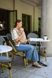 MoMi Collet je ergonomické nosítko navržené pro zdravý vývoj dítěte a pohodlí rodiče. Široký nastavitelný panel podporuje přirozené zakulacení zad, zatímco správná M‑poloha nožiček je šetrná ke kyčlím. Od 3 měsíců můžete nosit miminko na hrudi, od zhruba 12 měsíců je vhodná i poloha na zádech.