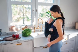 Malá kapsa na drobnosti, gumičky na stažení konců popruhů a kompaktní velikost po složení dělají z nosítka skvělého parťáka doma i na cestách.