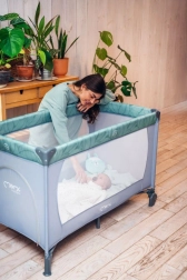 Síťovina zajišťuje cirkulaci vzduchu a přehled o dítěti. Boční vstup na zip umožní starším dětem samostatně vlézt a vylézt.