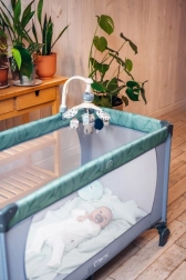Postýlku složíte během chvilky a díky rozměrům 21 × 23 × 80 cm se snadno vejde do kufru. Ideální na dovolené, návštěvy i víkendy u prarodičů.