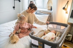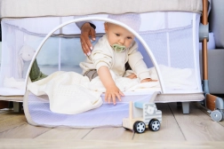 Přistýlka s 5 úrovněmi výšky se snadno srovná s vaším lůžkem; prodyšné síťované boky zvyšují komfort a dohled nad miminkem.