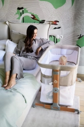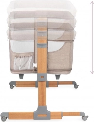MoMi Smart Bed umožní mít miminko bezpečně hned u vaší postele, aniž byste museli v noci vstávat. Díky 5 úrovním výšky a možnosti nastavení sklonu matrace snadno přizpůsobíte postýlku výšce lůžka i potřebám dítěte (např. při rýmě). Prodyšné síťované bočnice zajišťují cirkulaci vzduchu a skvělý přehled o miminku.
