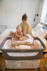 MoMi Smart Bed 3v1 je řešením pro rodiče, kteří chtějí mít miminko v noci nablízku a zároveň mu dopřát vlastní, bezpečný prostor. Přistýlka usnadňuje kojení i noční péči bez zbytečného vstávání. Díky hliníkovému rámu je konstrukce stabilní a lehká, síťované bočnice zajišťují ideální cirkulaci vzduchu a výborný dohled na dítě.