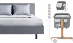 Postýlku snadno přizpůsobíte své posteli – k dispozici je 5 výškových stupňů i možnost náklonu matrace, která pomáhá při rýmě a refluxu. Praktické kolečka ulehčují přesun po bytě, uzavíratelná spodní kapsa pojme plenky, dudlíky i dečku. Součástí balení je pás pro pevné připoutání k posteli rodičů, pěnová matrace (50 × 90 cm) a moskytiéra.