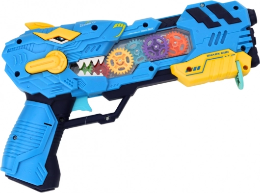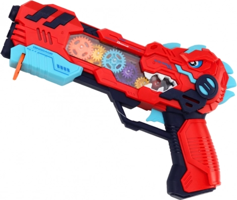 Objevte akční zábavu s pistolí ve tvaru dinosaura, která kombinuje promítání dinosaurů, světelné efekty a zvukové efekty. Každé stisknutí spouště spustí světelnou show s otáčejícími se podsvícenými ozubenými koly a realistickými zvuky.