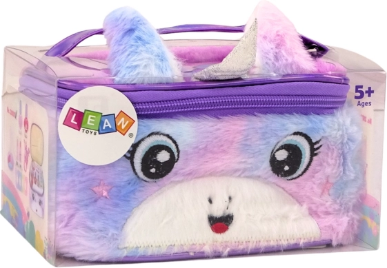 Okouzlete malé parádnice touto roztomilou kosmetickou sadou v plushové taštičce s motivem jednorožce. Uvnitř najdou lak na nehty, cinky na oči, rtěnky, prstýnek s leskem a separator na prsty – vše pro bezpečnou a kreativní hru. Měkoučká taštička v pastelových barvách je praktická, přenosná a podporuje fantazii i jemnou motoriku.