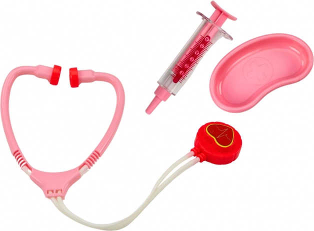 Zábavná a vzdělávací dětská lékařská sada v růžovém kufříku podporuje fantazii, empatii i jemnou motoriku. Obsahuje stetoskop, nůžky, pinzetu a stříkačky a další doplňky, které dětem bezpečně přiblíží svět medicíny. Praktický plastový kufřík usnadňuje ukládání i přenášení. Vhodné pro děti od 3 let, s certifikací CE a shodou s normou EN71.