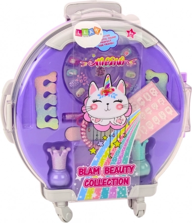 Tato přenosná sada krásy v roztomilém fialovém kufříku potěší všechny malé stylistky. Děti si mohou vyzkoušet malování nehtů, lepení samolepek i jemný make‑up, a to vše přehledně uložené v kompaktním kufříku s kolečky a madlem. Skvělá volba na výlety, návštěvy i každodenní hraní.