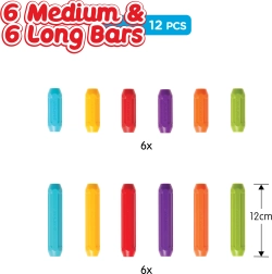 Set obsahuje tyče v různých barvách, které podporují kreativitu a umožňují vytvářet poutavé a barevné konstrukce.