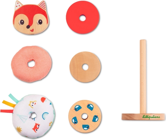 Se stohovací pyramidou Liška Alice si děti užijí kreativní hru, která podporuje jejich motorické schopnosti. Skládá se z různých částí, včetně 4 dřevěných a 2 textilních dílů, a dřevěného podstavce. Každá hra s touto pyramidou je jiná, díky možnosti různorodého sestavení dílů.