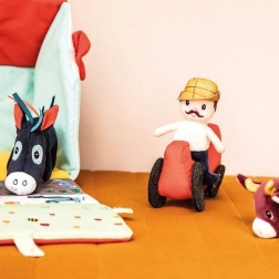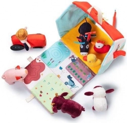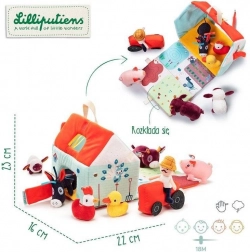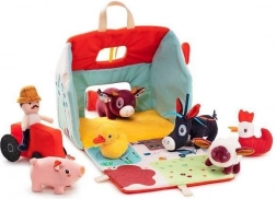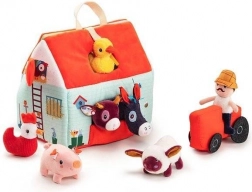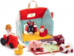 Tento textilní set promění každý den v dobrodružství na statku. Barevný domek-stodola se rozkládá do podoby venkovské ohrady s potiskem záhonků, pastviny, jezírka a bahniště pro prasátko. Součástí je vousatý farmář Jeff, červený traktor a zvířátka: kravička Rosalie, prasátko Simon, ovečka Yvon, kačer Gaston, slepička Paulette a oslík Ignace. Vše je vyrobeno z měkkých materiálů s různými strukturami pro smyslové vnímání.