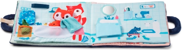 Tato krásná látková knížka provede děti krok za krokem večerní rutinou – od přípravy večeře, přes koupání až po uložení do postýlky. Měkké textury, šustivé detaily a pohyblivé prvky podporují taktální stimulaci i koordinaci oko–ruka. Součástí je i malá figurka lišky, se kterou děti mohou příběh aktivně prožívat.