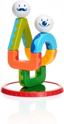 Barevné tvary a kuličky s obličeji podporují jemnou motoriku, koordinaci oko–ruka a prostorové vnímání. Ideální hračka pro první stavební pokusy.