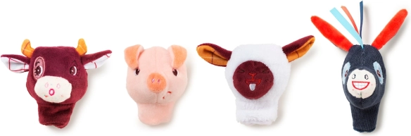 Představte si všechny ty zábavné příběhy, které můžete zahrát svým dětem pomocí těchto roztomilých prstových loutek. V sadě jsou 4 zvířátka ze statku - kravička, prasátko, ovečka a oslík. Každá prstová loutka má svůj vlastní výraz. Oslík Ignác se směje, ovečka zase vyplazuje jazyk. Usaďte si loutky na prsty a divadlo může začít. Malé děti budou raději divadlo pozorovat, starší už se mohou zapojit a sami odehrát nějaký příběh. Tato hra napomáhá rozvoji představivosti a řeči.