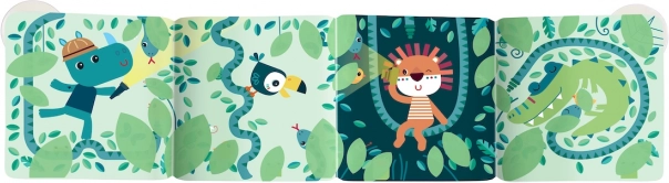 Ponořte tuto kouzelnou knížku do teplé vody a sledujte, jak se před vašima očima objeví vzrušující příběh. Knížka je opatřena 2 přísavkami, díky kterým ji můžete snadno připevnit k vaně nebo obkladům a vytvořit tak zábavný panel k vyprávění příběhů o dobrodružstvích v džungli. Počítejte s tím, že se děti budou rády podílet na hledání malých zvířátek schovaných v hluboké džungli.