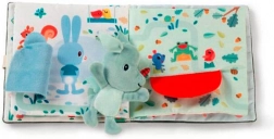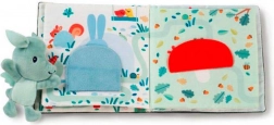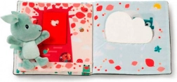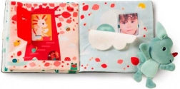 Interaktivní látková knížka „puk, puk“ od LILLIPUTIENS je hravá první kniha pro nejmenší. Děti se s mini mazlíčkem – dráčkem JOE – podívají na návštěvu k lesním kamarádům, objevují okénka, klopy a různé materiály, a trénují tak úchop i koordinaci. Šušťavá obálka a foto-okénko podpoří smyslové vnímání a rodinné rituály čtení.