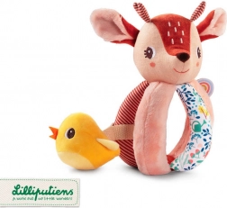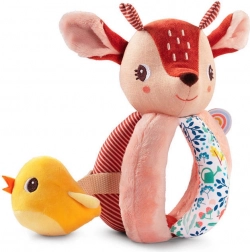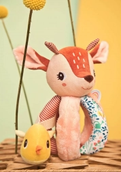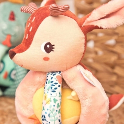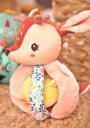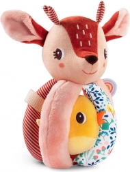 Srnka Stella je hebká látková kamarádka, která zabaví miminko chytáním, třesením, vkládáním a vytahováním. Tělo tvoří měkká koule z pěti úchopů – jeden s ocáskem, další se šustěním a s texturovanou "duhou" pro bohaté hmatové vjemy. V hlavičce je ukrytý jemný zvoneček, žlutý ptáček na stužce zase příjemně chrastí a lze ho zasouvat dovnitř a ven.