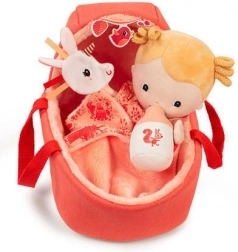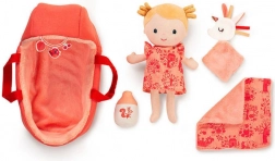 Set podporuje jemnou motoriku, emoční rozvoj i fantazii prostřednictvím hry na rodinu. Oboustranný košík s uchy usnadní přenášení, oboustranná dečka poslouží jako přikrývka i přebalovací podložka. Panenku lze prát na 30 °C v jemném programu, aby zůstala stále svěží a připravená k dalšímu dobrodružství.