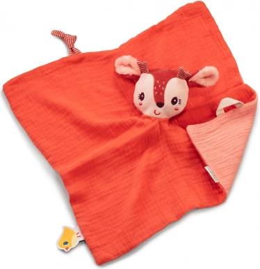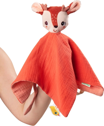 Měkoučký muchláček jelínek Stella je ideální hračka do postýlky pro děti již od narození. Měkký dotek a postavička kamarádky Stelly bude děti uklidňovat při usínání. Navíc si lze se Stellou hrát jako s loutkou a starším dětem tak můžete vyprávět příběhy. Lze využít i jako držák na dudlík. Rozměry muchláčka jsou 32 x 32 cm. Lze prát v pračce na jemný cyklus při 30°C. Vyrobeno z organické bavlny. Výplň je ze 100% polyesteru.