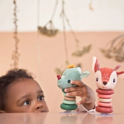 Jelínek Stella je neuvěřitelně zábavná hračka, která se při sebemenším doteku rozvlní. Její textilní hlava a certifikované dřevěné kroužky zajišťují bezpečnost a kvalitu. Vhodné pro děti od 6 měsíců, což z něj činí perfektního společníka pro nejmenší.