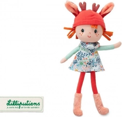 Panenka Stella (30 cm) z dílny belgické značky Lilliputiens okouzlí jemným designem a promyšlenými detaily. Ryzí měkkost textilií, bezpečné vyšívané oči, nos i pihy a příjemná velikost z ní dělají ideálního společníka na spaní, do kočárku i na cesty. Styl doplňuje květinové šatičky, mincově zelené rukávy a sladěná šála.